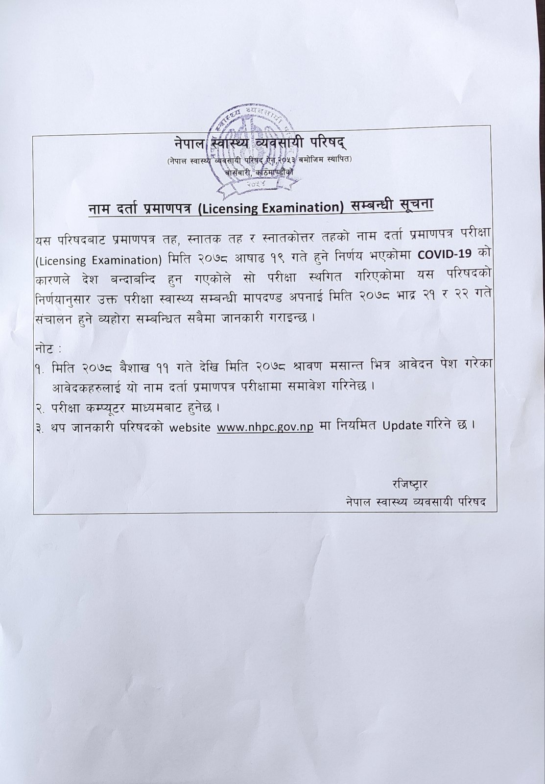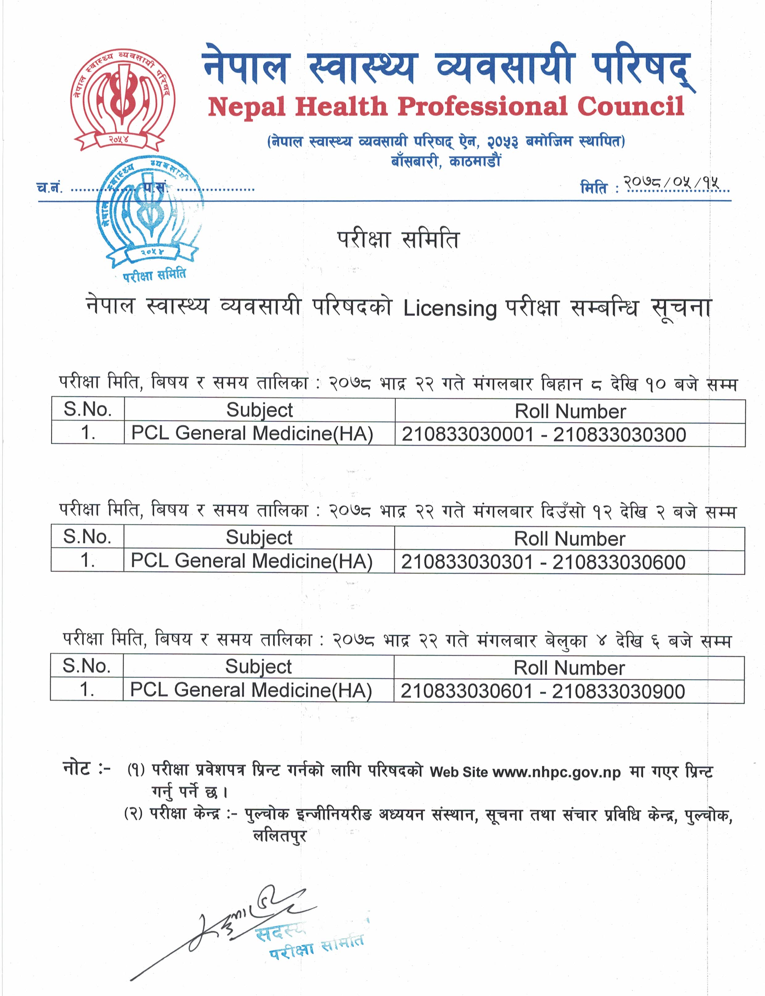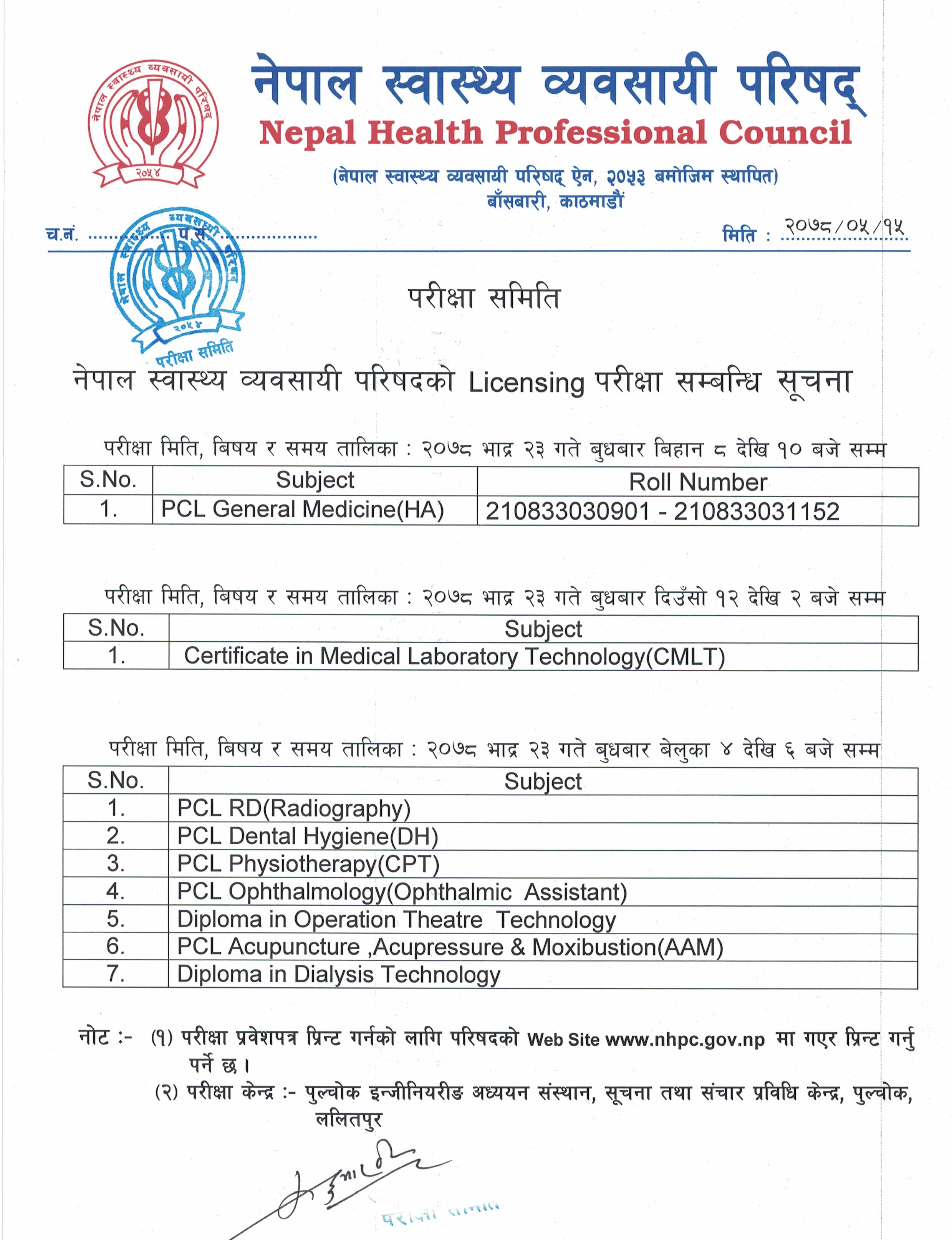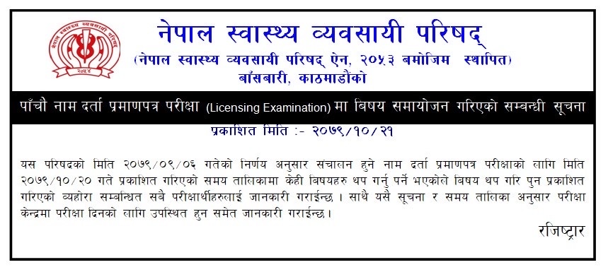 Notice Regarding 16th License Examination Admitcard, Exam Center And Routine