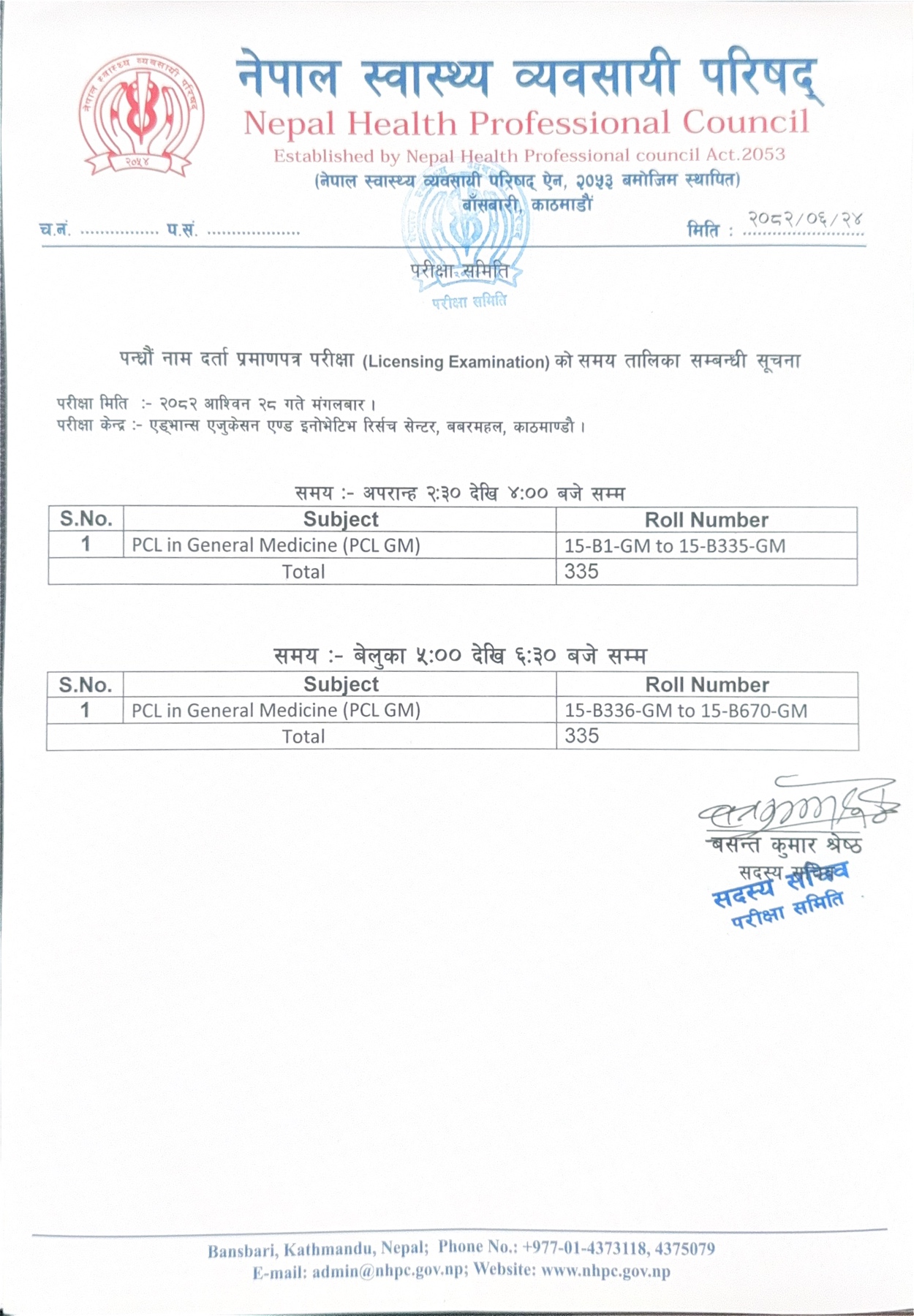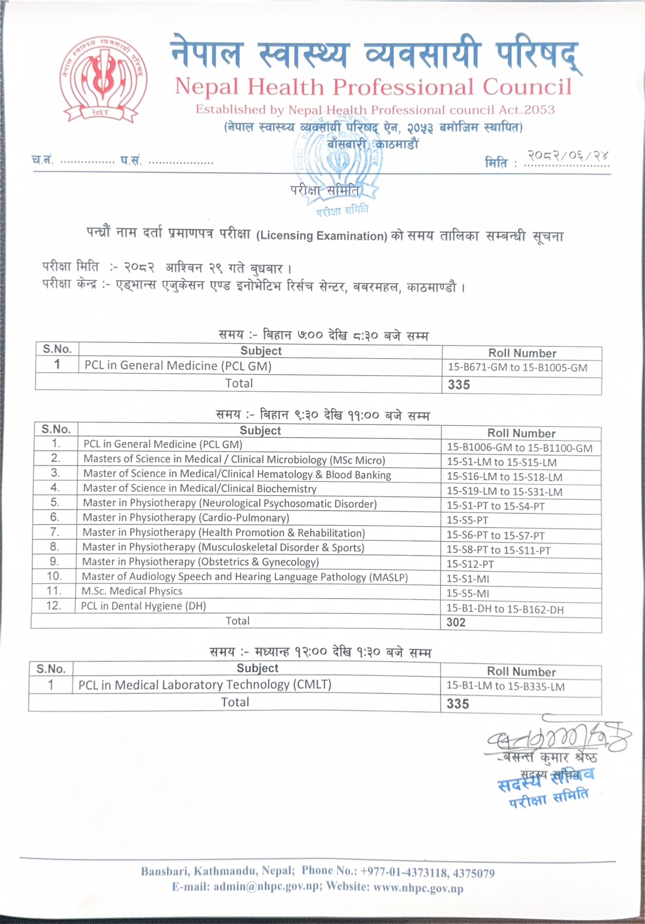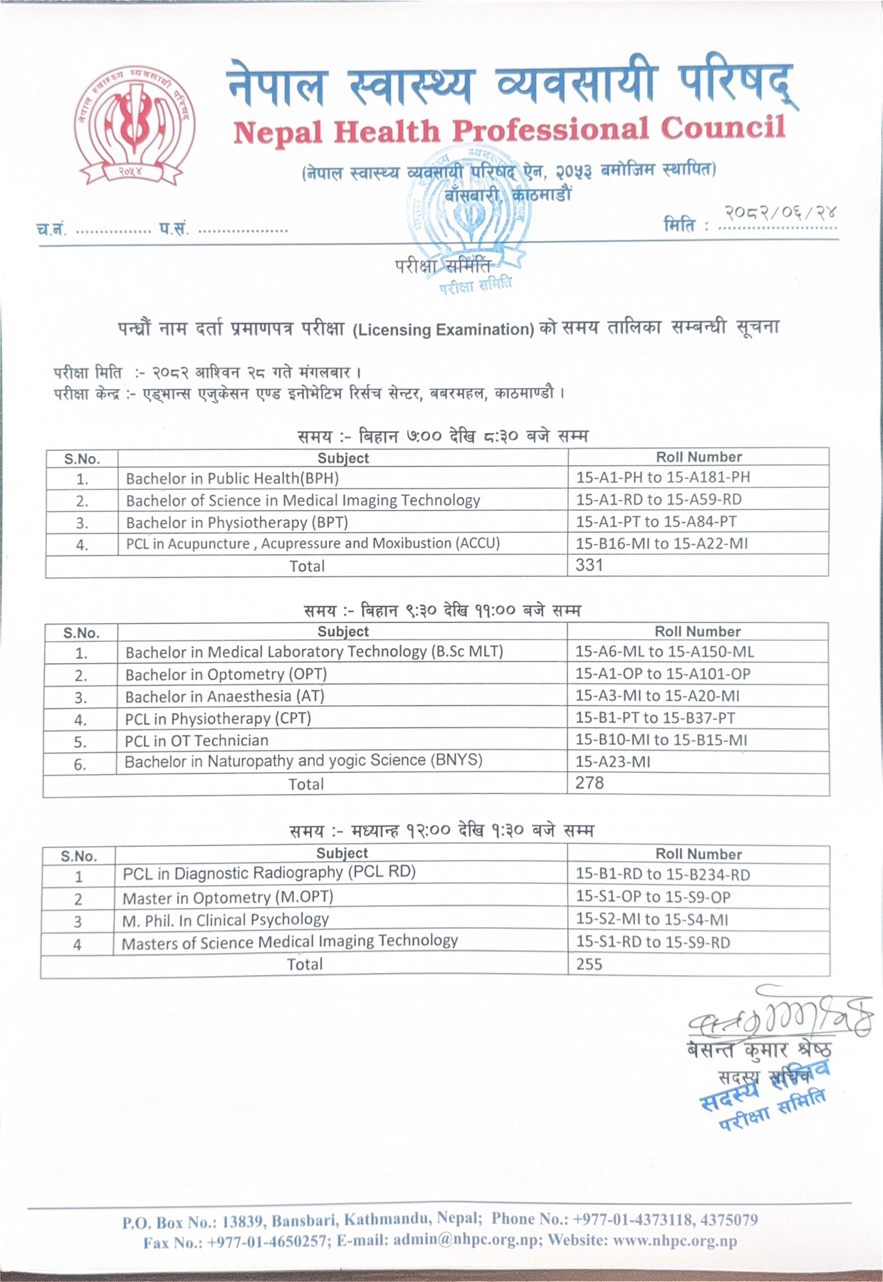 Nepal Health Professional Council (NHPC) is an autonomous body established under the Nepal Health Professional Council Act 2053. The aim of this council is to register all the "Health professionals" other than Medical doctors , Nurses , Pharmacists, and Ayurveda according to their qualification; and bring them into a legal system as to make their services effective with quality and timely in a scientific manner.